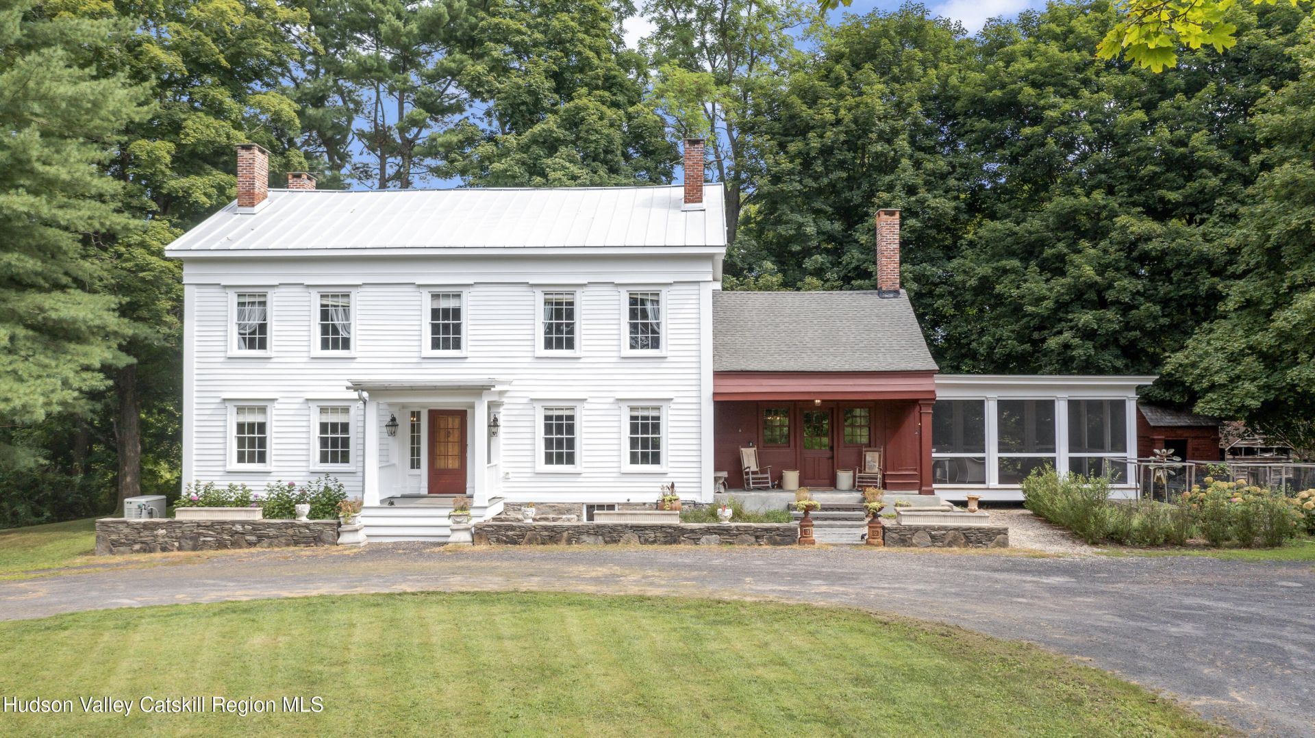 Originally built in 1836, this beautifully restored Greek Revival Center Hall welcomes you with timeless charm and thoughtful updates. Set on over four acres with Willow Brook gently winding through the property, it offers a warm, peaceful retreat where historic character and modern comfort come together to create a truly special place to call home. Inside, original wide board floors, exposed hardwood beams, and intricate molding and trim work highlight the homes craftsmanship. The center hall layout leads to a stunning double parlor with two fireplaces and original pocket doors, as well as an open dining and living room boasting two additional fireplaces, perfect for gatherings both intimate and large.The heart of the home--a warm and inviting kitchen--features a wood-burning fireplace, gas stove, island, walk-in pantry, and laundry room. From here, step out to a screened porch --ideal for morning coffee, evening relaxation, or weekend entertaining. Upstairs youll find 3 spacious bedrooms and 3 full bathrooms, as well as a room that could be used as a 4th bedroom, a custom walk-in closet/dressing room, or sitting room. The attic is a versatile space and can be reached by 2 separate staircases. The exterior boasts classic clapboard siding, metal roof, original 6-over-6 windows, raised garden beds, a fenced backyard, and several vintage outbuildings. In the basement youll find updated mechanicals and the original milkroom with bluestone floor, echoing the homes agricultural past. Located just 3 miles from the Taconic State Parkway, this exceptional property is a beautiful blend of historic significance, and modern functionality.